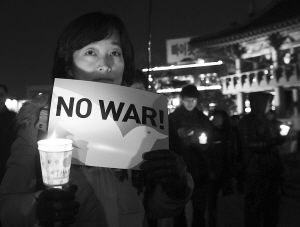 | 十一月二十九日,一些韩国民众在首尔举行烛光集会,抗议韩美联合军演,祈祷和平。 新华社发 |