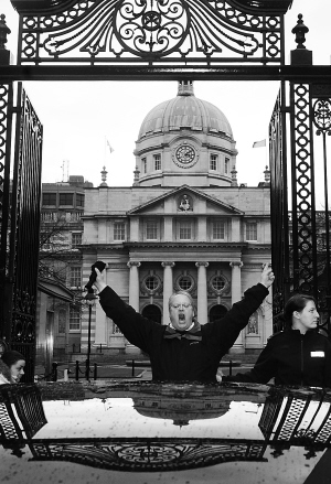 11月21日,在都柏林,民众抗议政府可能接受欧盟援助机制以缓解债务危机。 新华社发
