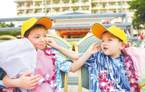今天下午,在三亚椰林滩大酒店举行的欢迎仪式上,三亚市第九小学的50名小学生向吉方儿童献上了兰花花环、带有卡通动物形象的花束以及贝壳项链。吉方领队伊曼伯蒂·贾里洛弗表示,人们在危难的时候,才会发现谁是真正的朋友。