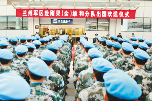 11月28日,在西安咸阳国际机场,即将踏上征程的维和部队官兵整装待发。 当日,中国第十二批赴刚果(金)维和部队第二梯队118人从西安咸阳国际机场登机,飞赴刚果(金)布卡武任务区执行为期8个月的维和任务。中国第十二批赴刚果(金)维和部队的218人全部来自兰州军区,其中第一梯队100名官兵已于11月19日从西安先期出发。 新华社发