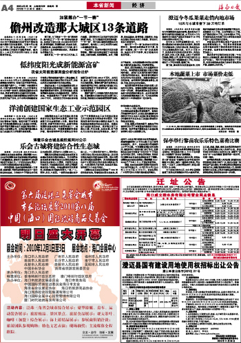 海南日报 本省新闻 004 2010-11-301 2010年11月30日 星期二