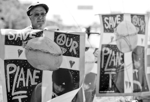 | 十一月二十九日,游行者在墨西哥坎昆举行的联合国气候变化会议会场外呼吁拯救地球。 新华社发 |