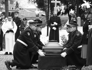 | 11月29日,在立陶宛首都维尔纽斯,立陶宛士兵将拿破仑士兵的棺柩入葬。