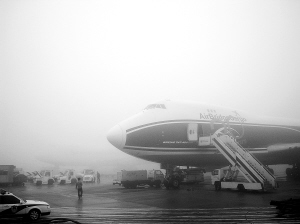 | 12月1日清晨,浦东机场停机坪上浓雾弥漫。受大雾影响,多架从上海起飞的航班一度延误或取消。