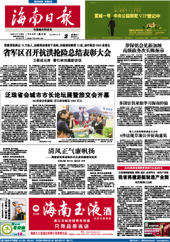 海南日报 头版 001 2010-12-021 2010年12月02日 星期四