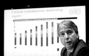12月1日,在美国纽约联合国总部,联合国经济与社会事务部发展政策分析司司长沃斯在新闻发布会上就《2011年世界经济形势与展望》报告的相关内容回答记者提问。