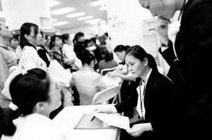 | 海口采取多种措施帮助市民就业和创业。图为日前在海口举行的一场招聘会上,应聘者正在与招聘企业进行交流。