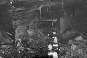 | 12月5日,消防队员进入爆炸事故现场。 新华社发(陈沛亮 摄) |