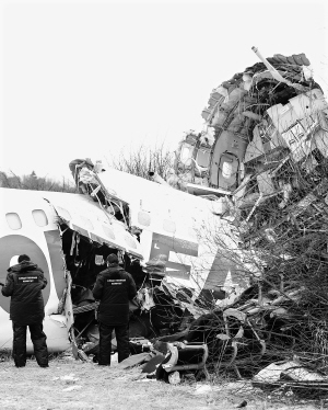 俄航空署说 “图-154”客机 迫降时断成3截 12月5日,工作人员在俄罗斯莫斯科多莫杰多沃机场的“图-154”客机紧急迫降现场展开调查。 俄罗斯航空署署长涅拉季科4日在多莫杰多沃机场说,当天因机械故障在该机场紧急迫降的“图-154”客机降落后撞上一座小山丘,断裂成3截。俄卫生和社会发展部说,事故共导致2人死亡,80多人受伤,部分人员伤势严重。 新华社/路透