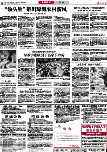 海南日报 本省新闻 004 2010-12-061 2010年12月06日 星期一