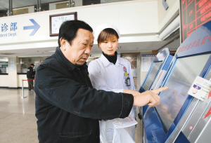12月8日,在徐汇区斜土路社区卫生服务中心内,一名患者将社保卡插进自助分诊机进行挂号。 近日,上海市徐汇区的13个社区卫生服务中心,改变传统的就医流程,推出“全程诊疗,一次收费”的新举措。居民凭社保卡在自助分诊机上刷卡挂号后,就可到相关科室候诊。挂号费、药费,以及看病过程中的拍片、化验等项目检查费用均在取药前一次性结算。这种“先看病,后付账”的方式省去了多次排队付费的麻烦,方便了居民就医。 新华社记者 刘颖 摄