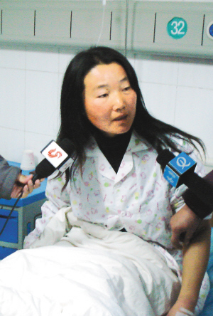 12月8日,山东阳谷中石药业有限公司爆炸事故中的受伤村民在阳谷县人民医院接受治疗时接受媒体采访。当日5时40分左右,山东聊城市境内山东阳谷中石药业有限公司一车间发生意外爆炸,并引发大火。目前已知事故造成6人轻微受伤,1人小腿骨折。截至8日12时,事故现场火势仍未得到控制。 新华社发
