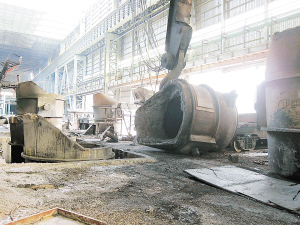山东莱芜一钢厂铁水罐倾翻3死5伤 这是发生倾翻事故的钢水罐。12月8日,位于山东省莱芜市莱城区口镇的山东富伦钢铁有限公司炼钢厂发生240吨行车铁水罐倾翻事故,目前确认3名工人死亡,5人受轻伤。 新华社发