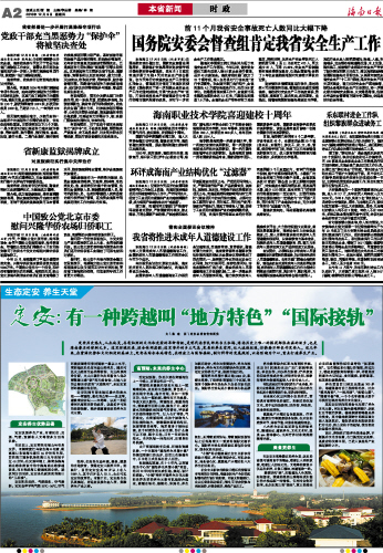 海南日报 本省新闻 002 2010-12-091 2010年12月09日 星期四