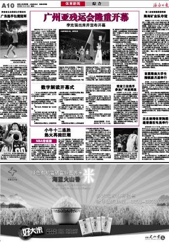 海南日报 体育新闻 010 2010-12-131 2010年12月13日 星期一