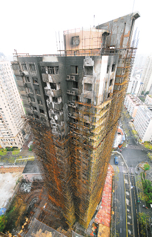 这是发生“11·15”火灾的上海胶州路大楼。记者近日从上海市静安区获悉,该区已经制定出台《胶州路728号受灾住户善后过渡安置房租补贴建议方案》,要求责任单位对“11·15”特大火灾事故受灾住户设定70元/平方米/月的房租补贴标准,按户发放过渡安置房租补贴。所涉及的补贴费用由事故责任单位以现金方式支付给受灾住户。新华社发