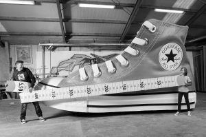 | ← 这是吉尼斯世界纪录认证机构2010年11月18日提供的世界上最大鞋的图片。这只长5.5米,寛2.11米,高2.9米的鞋于11月17日在荷兰阿姆斯特丹亮相。这只鞋是按照匡威39码的帆布鞋原比例扩大复制,相当于英国鞋码845码。
