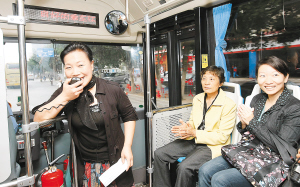 下午,李素丽登上了40路公交车,向“徒弟”们亲身示范她热情周到的服务。