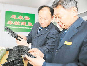 12月14日,设计人员在交流空调鞋空气循环功能技术。历经27年时间的潜心研发,一双拥有36项国内外专利、总投入达3000万人民币的保健空调鞋,日前在烟台研制成功。该空调鞋根据仿生学、工程力学、保健医学等原理,采用独特的空气循环系统和精巧的能量循环系统,运用纳米技术与磁疗技术,增强脚部的血液循环。 新华社发
