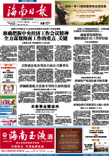海南日报 头版 001 2010-12-161 2010年12月16日 星期四