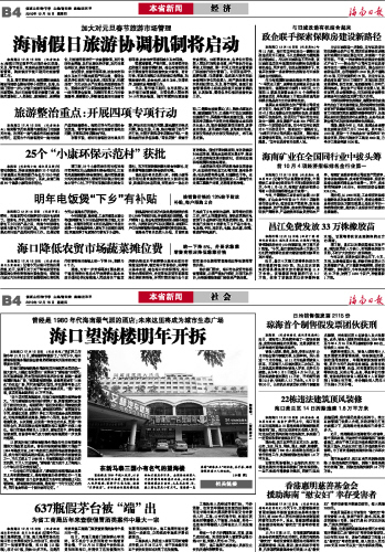 海南日报 本省新闻 012 2010-12-161 2010年12月16日 星期四