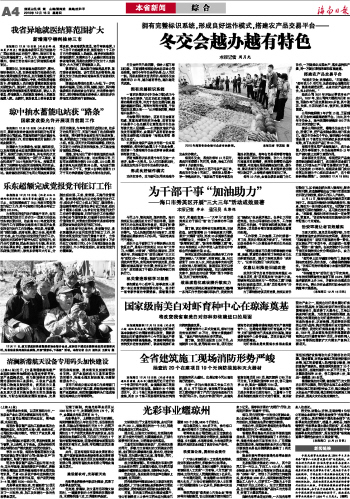 海南日报 本省新闻 004 2010-12-161 2010年12月16日 星期四