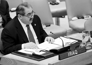 12月15日,在纽约联合国总部,伊拉克外长兹巴里在会上发言。 当日,联合国安理会举行关于伊拉克局势会议时通过决议,取消对伊拉克在大规模杀伤性武器、导弹和民用核活动领域的制裁,结束“石油换食品计划”。 新华社记者申宏摄