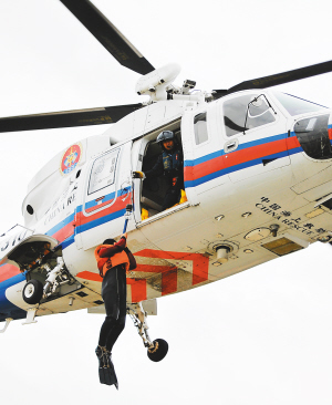 12月16日,交通运输部东海第二救助飞行队专业救助直升机B-7310在进行救援飞行表演。 当日,交通运输部东海第二救助飞行队在福州长乐机场内建立救助飞行基地,重点执行台湾海峡北部海域和闽北沿海的救助任务。该基地的建立对加强台湾海峡海上遇险(难)中外船舶和人员生命安全的救助、救生力量,提高海上快速搜寻、立体救助和应急保障能力,保证台湾海峡的海上安全,履行国际海上安全义务和更好完善台湾海峡立体救助体系具有重要意义。 新华社发