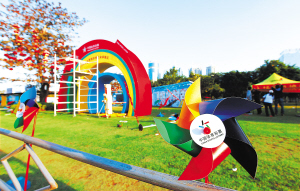 | 由省体育彩票管理中心和美国IGP公司等5家国内外公司机构联合参展的“体育娱乐彩票体验展区”布设完成。 本报记者 宋国强 摄