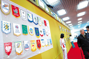 | 图为体博会上展出的体育锦旗。