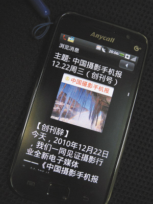 12月22日,中国摄影手机报创刊号发布。 当日,许多手机用户收到了摄影行业的全新电子媒体“中国摄影手机报”的创刊号。该报是中国摄影家协会的第五家媒体,每周二、五出版发布。 新华社记者 张燕辉 摄
