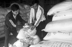 12月22日,海口盐务分局根据群众举报,同省盐务局稽查大队、海口工商局与当地派出所联手行动,在海口市龙华区遵谭镇王现村民房里查获一个私盐窝点。现场查获私盐174包,近9吨。据海口盐务分局负责人介绍,这些私盐是违法经营者为了牟利,从临高产盐地非法私运来的。 图为海口盐务分局执法人员在谭镇王现村现场查获私盐。 本报记者 陈德雄 摄