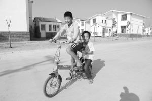 | 今年11月,报白村的孩子们在新居旁的道路上开心地骑车 卞王玉珏 摄 |