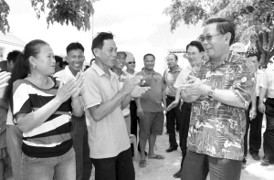 | 今年11月,两位黎族妇女高兴地往新居里搬新电视机。 卞王玉珏 摄 |