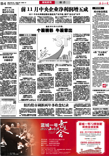 海南日报 财经新闻 012 2010-12-241 2010年12月24日 星期五