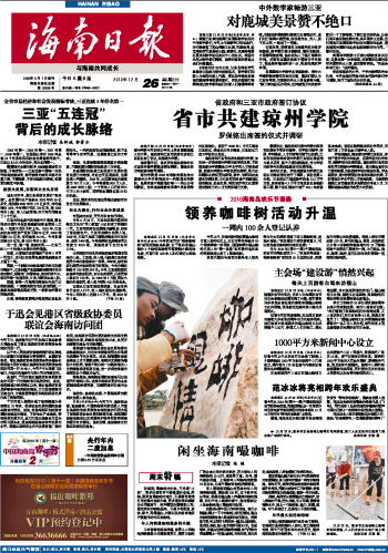 海南日报 头版 001 2010-12-261 2010年12月26日 星期日