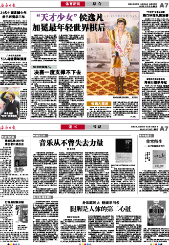海南日报 体育新闻综合/读书书话 007 2010-12-261 2010年12月26日 星期日
