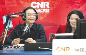 随后,温家宝来到直播间,戴上耳机,通过无线电波和收音机前的全国听众进行交流。这是温家宝总理第一次走进电台直播间。
