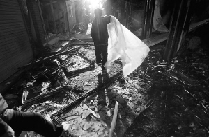 | 延坪岛居民走过被炮弹袭击后的居所 |
