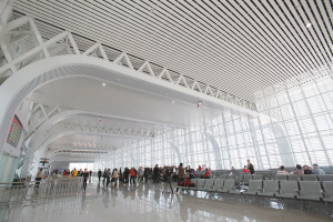 14时28分,“和谐号”缓缓减速,抵达海口美兰站。从海口东站到美兰站,仅仅用了8分多钟!而此前,正常的汽车车程至少要20分钟左右。有媒体同行惊呼,“有了高铁,以后去机场就不怕堵车了!”美兰站是国内首个直通机场的高铁车站,建成后可同时供335人上下车。旅客下了飞机步行或乘坐300多米长的电梯,可以很方便地坐上东环快速列车,驶往海口或三亚,真正实现了航空和铁路的“无逢对接”。