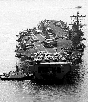 | 美军最先进的核动力航空母舰“里根”号。
