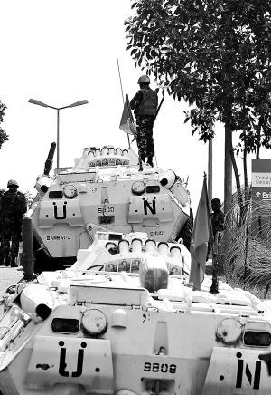 12月27日,联合国驻科特迪瓦特别行动团的士兵执行维和任务。 受西非国家经济共同体(西共体)委托,西非国家贝宁、塞拉利昂和佛得角三国总统定于28日前往科特迪瓦斡旋,旨在破解这个国家自总统选举结束以来出现的“一国两主”的政治僵局。他们的斡旋能否取得成功,引起国际社会的广泛关注。 新华社记者 赵颖全 摄 科特迪瓦: 站在战与和的十字路口