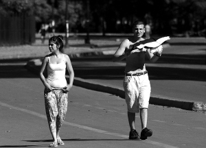 ← 12月27日,行人顶着烈日走在阿根廷首都布宜诺斯艾利斯街头。 布宜诺斯艾利斯当天遭热浪袭击,最高温度达到了40.3摄氏度。 新华社发