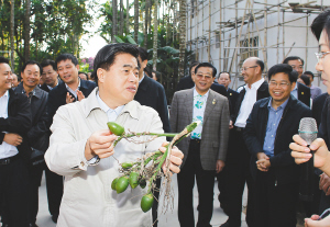 | 12月28日上午,广东省党政代表团在三亚槟榔村考察。 本报记者 宋国强 摄