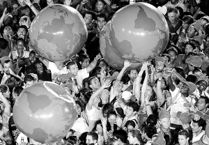 8月26日,在新加坡举行的首届青少年奥林匹克运动会闭幕式上,来自世界各地的运动员步入场中,围在舞台中央,尽情分享快乐。