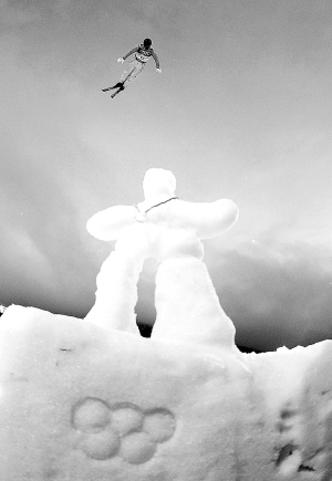 2月25日,温哥华冬奥会自由式滑雪男子空中技巧比赛在温哥华赛普里斯山举行。图为白俄罗斯选手达申斯基在赛前练习。