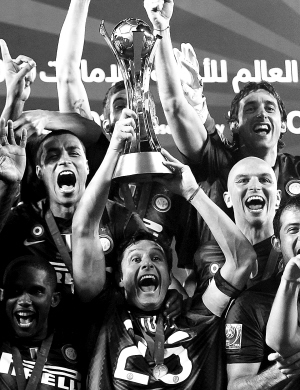12月18日,获得2010世界俱乐部杯后,国际米兰队球员高举奖杯庆祝胜利。