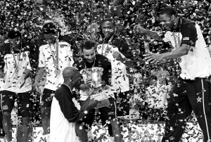 9月12日,时隔16年再次获得了世锦赛冠军后,美国男篮球员在颁奖仪式上捧杯庆祝。