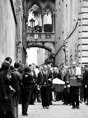 4月22日,在亲友的陪同下,萨马兰奇的灵柩被运往巴塞罗那大教堂。