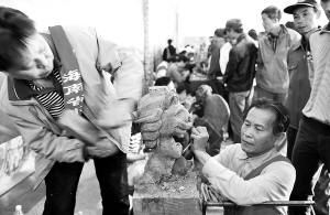 | 12月28日,欢乐节活动内容之一的全省非物质文化遗产传承人展演活动在福山咖啡文化风情镇举行。黎族织锦、雕画、剪纸、炭画等技艺传人大展绝活。